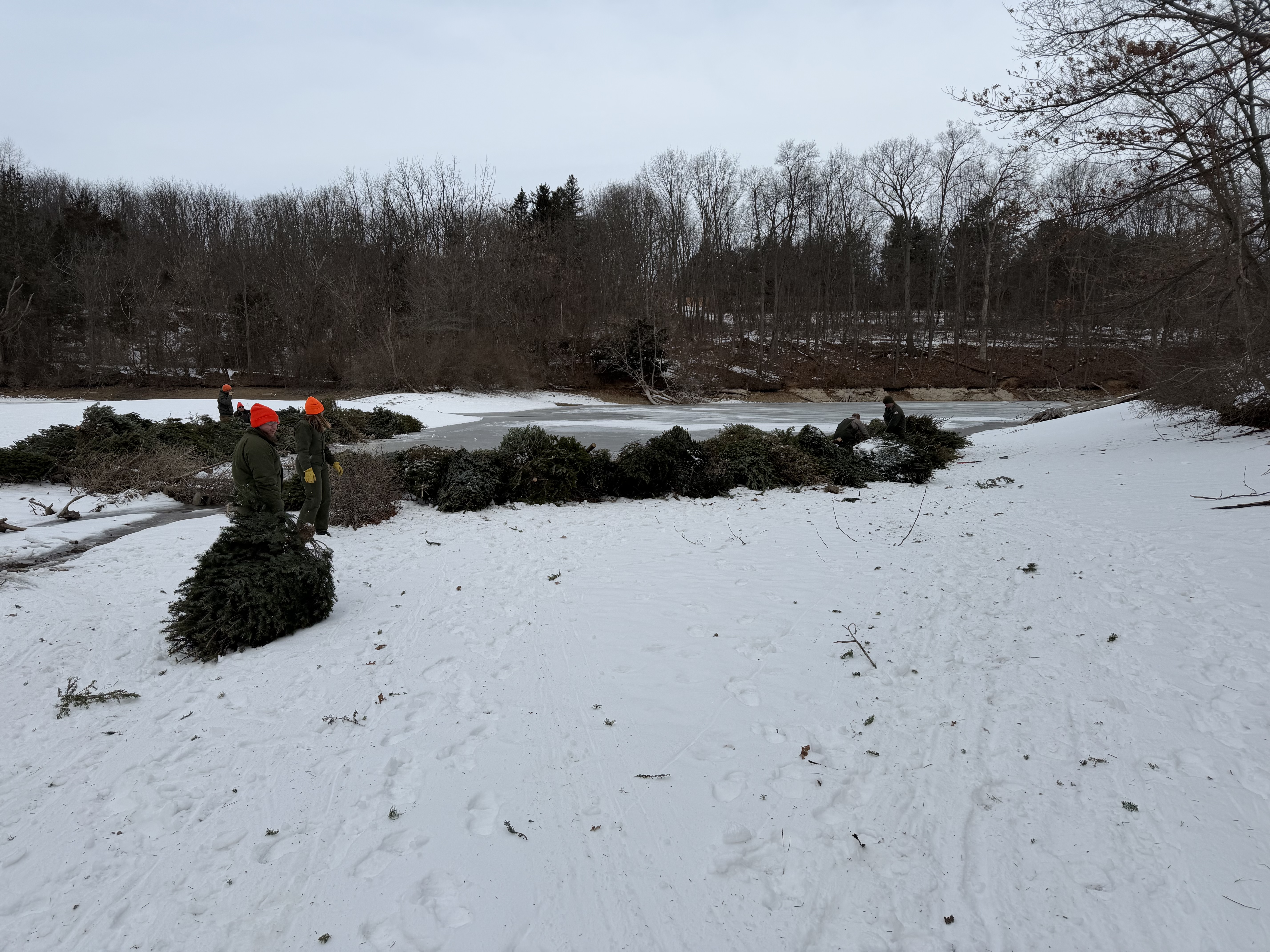 Last Saturday, I had the opportunity to participate in an amazing program which uses old Christmas trees to boost our local ecosystems at Blue Marsh Lake. This year is the seventh year that the Army Corps of Engineers has taken donated Christmas trees and built structures along shoreline exposed for the winter. As the water level rises in the spring, the trees will form essential habitats for fish to spawn and grow.